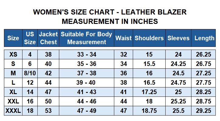 | USA/UK | 34 | 36 | 38 | 40 | 42 | 44 | 46 | 48 | 50 | 52 | 54 |